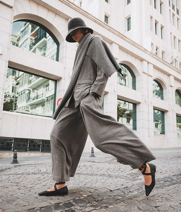 Carefully selected comfortable and stylish pieces for cold weather gain a modern touch with IKIKIZ's signature fabrics. Moving independently from winter fashion icons, this collection stands out with capsule pieces that embody the elegance of minimalism. Short jackets, comfortably cut dresses, and casual pants reflect both a functional and elegant style. Enriched with neutral tones and natural textures, this collection adds warmth and elegance to the spirit of winter.